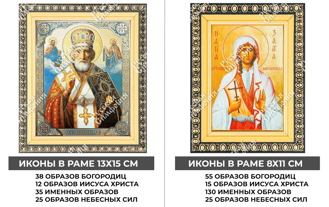 Иконы выполнены по канонам РПЦ и освящены